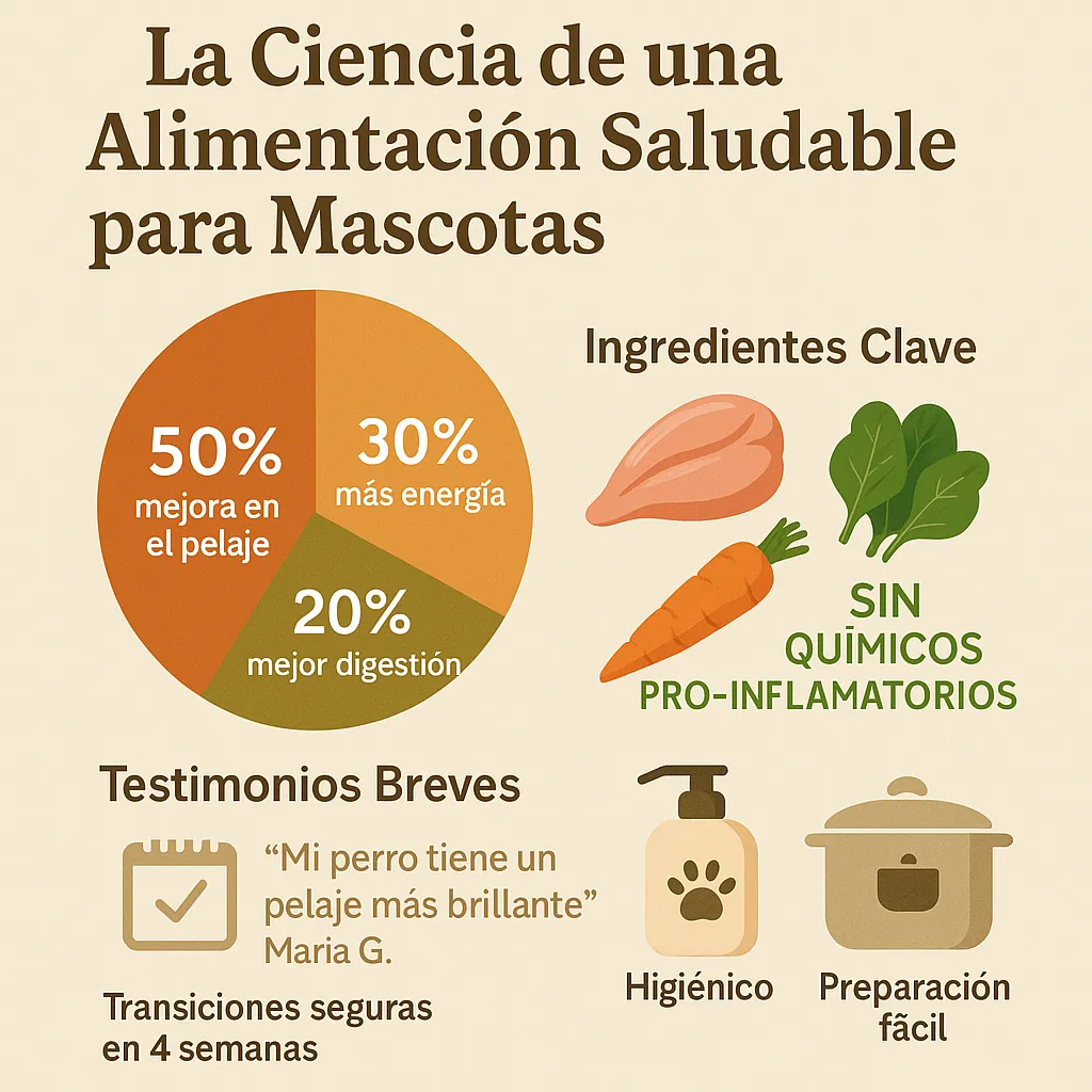 ¿Tu peludo esta cansado de la misma comida aburrida? Transforma la alimentación de tu perro o gato sin complicaciones. Nuestra guía te lleva de la mano a través de recetas balanceadas y sencillas, asegurando que cada bocado sea 100% libre de químicos y totalmente nutritivo. ¡Es hora de cambiar el concentrado por platos que realmente aman!